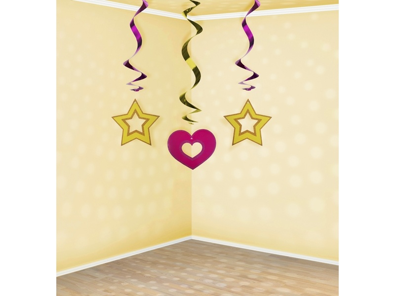 Roztomilé lesklé závěsné spirály s obrázky hvězdiček a srdíčka. Originální výzdoba narozeninových oslav