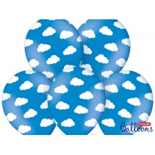 Balónek pastelový tmavě modrý - bílé obláčky - 6 ks